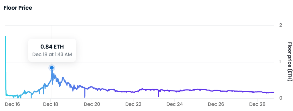 トランプ氏は12月15日にコレクションを発表し、懸賞応募期間中に45,000枚のNFTを鋳造することができました。各NFTはエントリー期間中に99ドルで、執筆時のETH価格から0.083ETHに相当します。