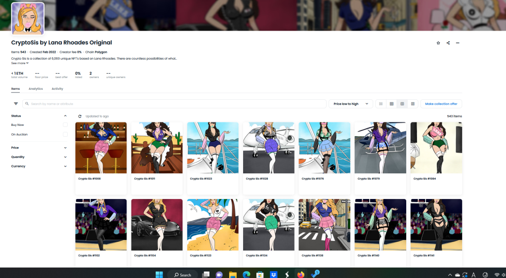 Crypto SisはRhoadesをテーマにした漫画のアバターNFT6,069個で構成されており、当初は6,969個を予定していましたが、需要不足で届かなかったとのことです。