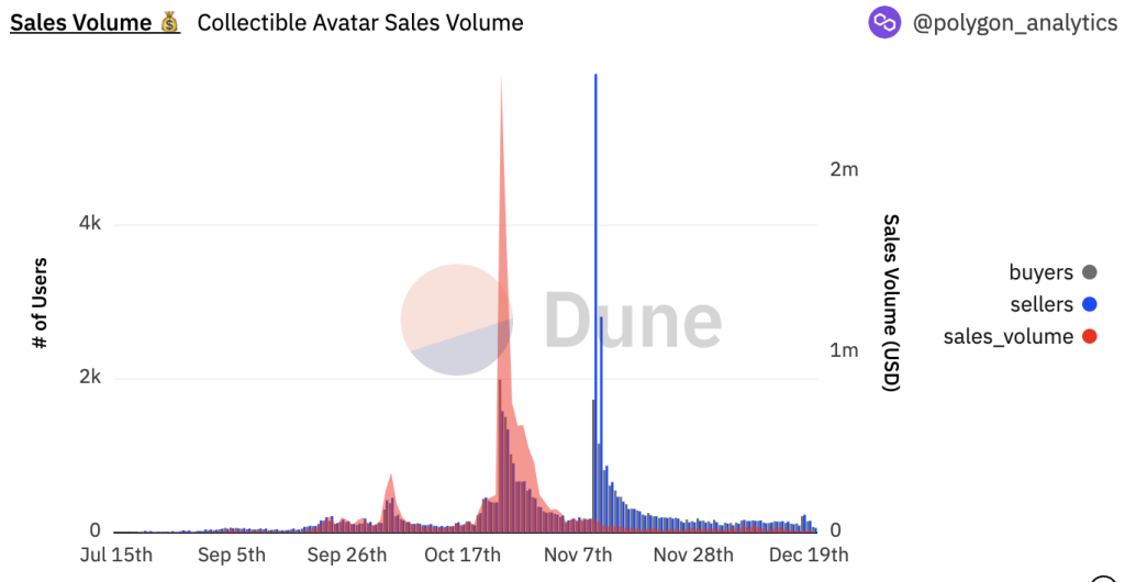 Redditアバター取引量。チャートで見る Dune Analytics