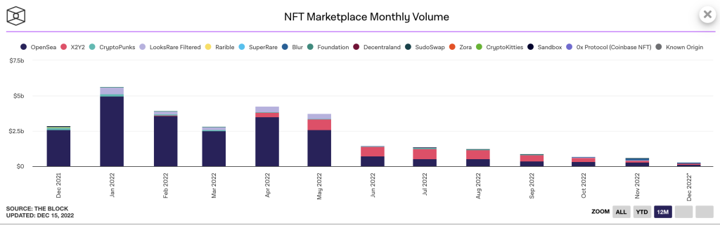 ブロックは、その年の最も劇的なデータポイントのいくつかを右クリックして保存しました。ここでは、NFTの1年を紹介します。