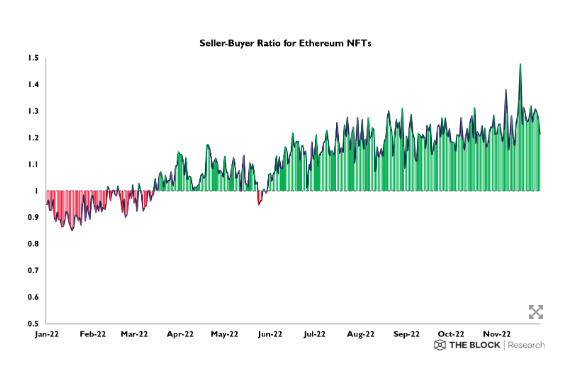 端的に言えば、イーサリアムのNFTは年末までに売り手よりも買い手の方が多かったというデータです。