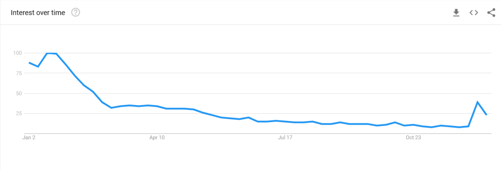 Google Trendsのデータでは、この間、非代替性トークン関連情報の検索が激減していることが明らかになりました。