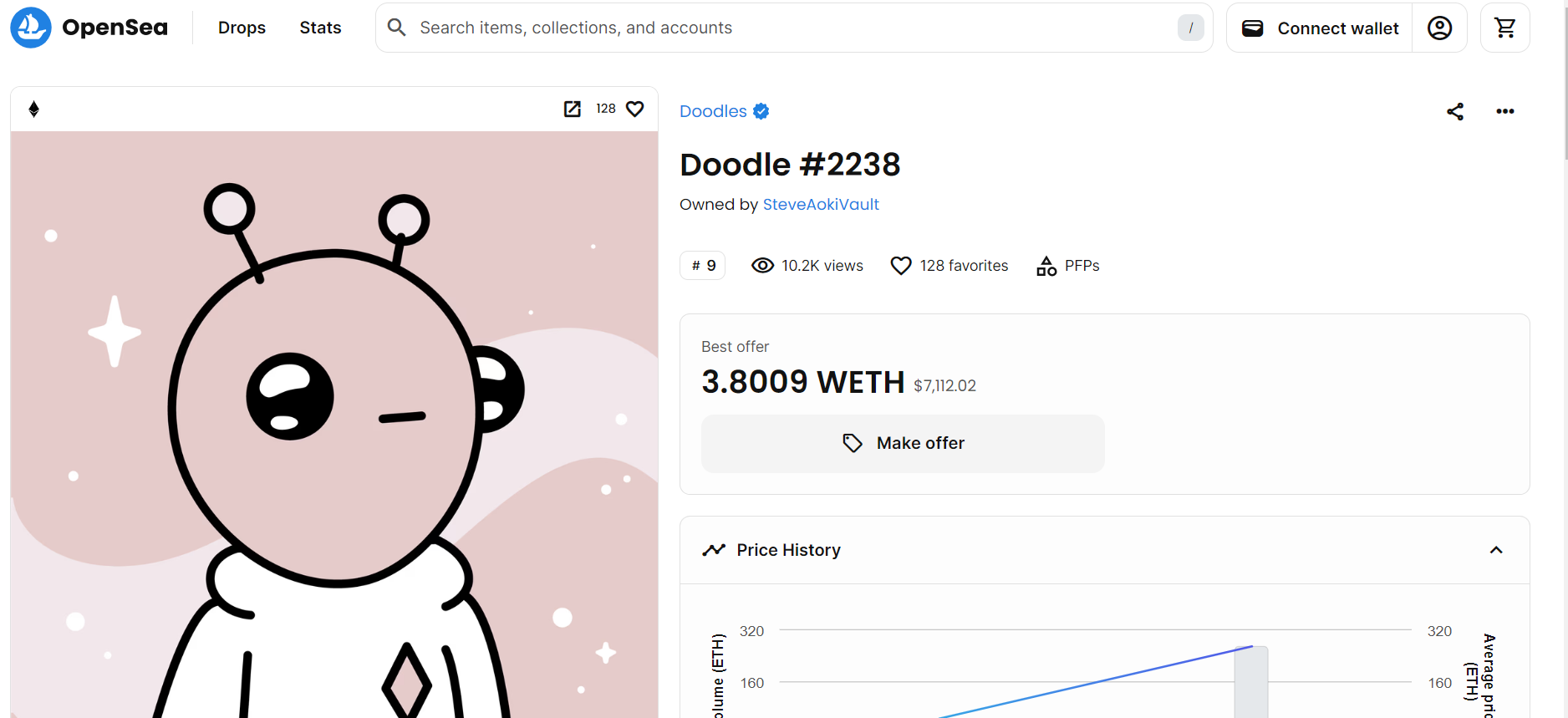 価値が大幅に下落した注目すべきコレクションの中には、当初86万2,000ドルという驚異的な価格で購入されたDoodle 2238があります。このNFTの現在の最高入札額はわずか12,000ドルであり、Aokiにとっては大幅な損失になります。